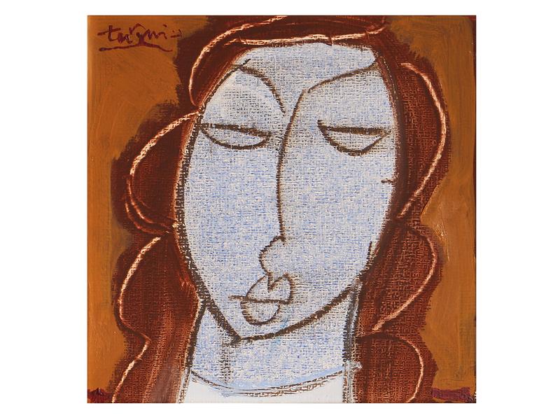 PORTRE. DURALİT ÜZERİ KARIŞIK TEKNİK. İMZALI. 25X25 CM.